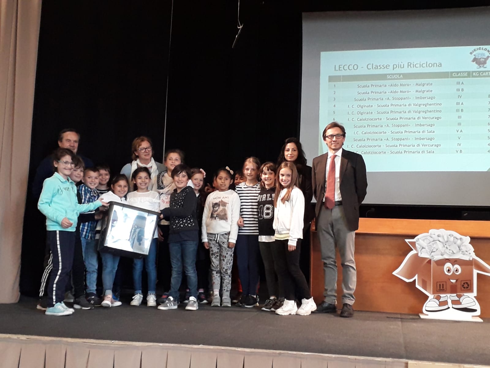 Martedì 21 Maggio, presso l’Auditorium di Colico, si sono svolte le premiazioni nell’ambito del progetto Riciclone, a cui hanno partecipato le classi terze della scuola primaria di Malgrate. Gli alunni delle due classi si sono classificati al primo posto tra le 23 classi partecipanti della provincia di Lecco, raccogliendo ben 1960 kg di carta e cartone. Il progetto, organizzato dalla Confindustria di Lecco e Sondrio con lo scopo di sensibilizzare i bambini sul tema del ciclo e riciclo, prevedeva di accumulare carta e cartone in appositi contenitori posizionati in classe e nei corridoi a scuola. I bambini con la collaborazione delle famiglie si sono impegnati per alcuni mesi a portare a scuola giornali, scatole, vecchi libri per fare…..più “peso” possibile.
