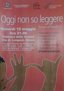 In una sola settimana, grazie alla bravura dei musicisti appartenenti al gruppo “Sulutumana” e all’attore Adducci, i bambini della scuola hanno saputo preparare uno spettacolo a dir poco travolgente! Ogni alunno ha recitato una frase e tutti sono stati capaci di trasmettere emozioni attraverso le canzoni corali che hanno accompagnato la storia di Pinocchio.